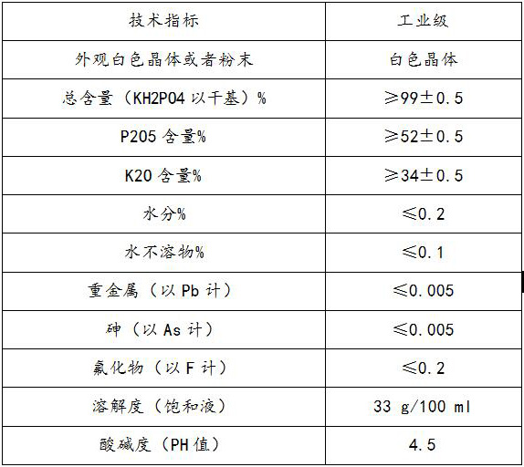 農(nóng)業(yè)上用作高效磷鉀復(fù)合肥;磷酸二氫鉀產(chǎn)品廣泛適用于各類型經(jīng)濟作物、糧食、瓜果、蔬菜等幾乎全部類型的作物,通過各地對各類型作物的實際施用效果證明磷酸二氫鉀具有顯著增產(chǎn)增收、改量優(yōu)化品質(zhì)、抗倒伏、抗病蟲害、防治早衰等許多優(yōu)良作用,并且具有克服作物生長后期根系老化吸收能力下降而導(dǎo)致的營養(yǎng)不足的作用。磷酸二氫鉀屬新型高濃度磷鉀二元素復(fù)合肥料,其中含五氧化二磷52%左右,含氧化二鉀34%左右。